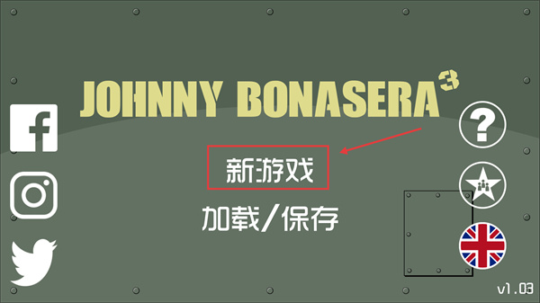 1、進(jìn)入【JOHNNY-BONASERA-3】游戲界面,優(yōu)先選擇【新游戲】開始游玩,若有存檔可點(diǎn)【加載/保存】續(xù)關(guān)。
